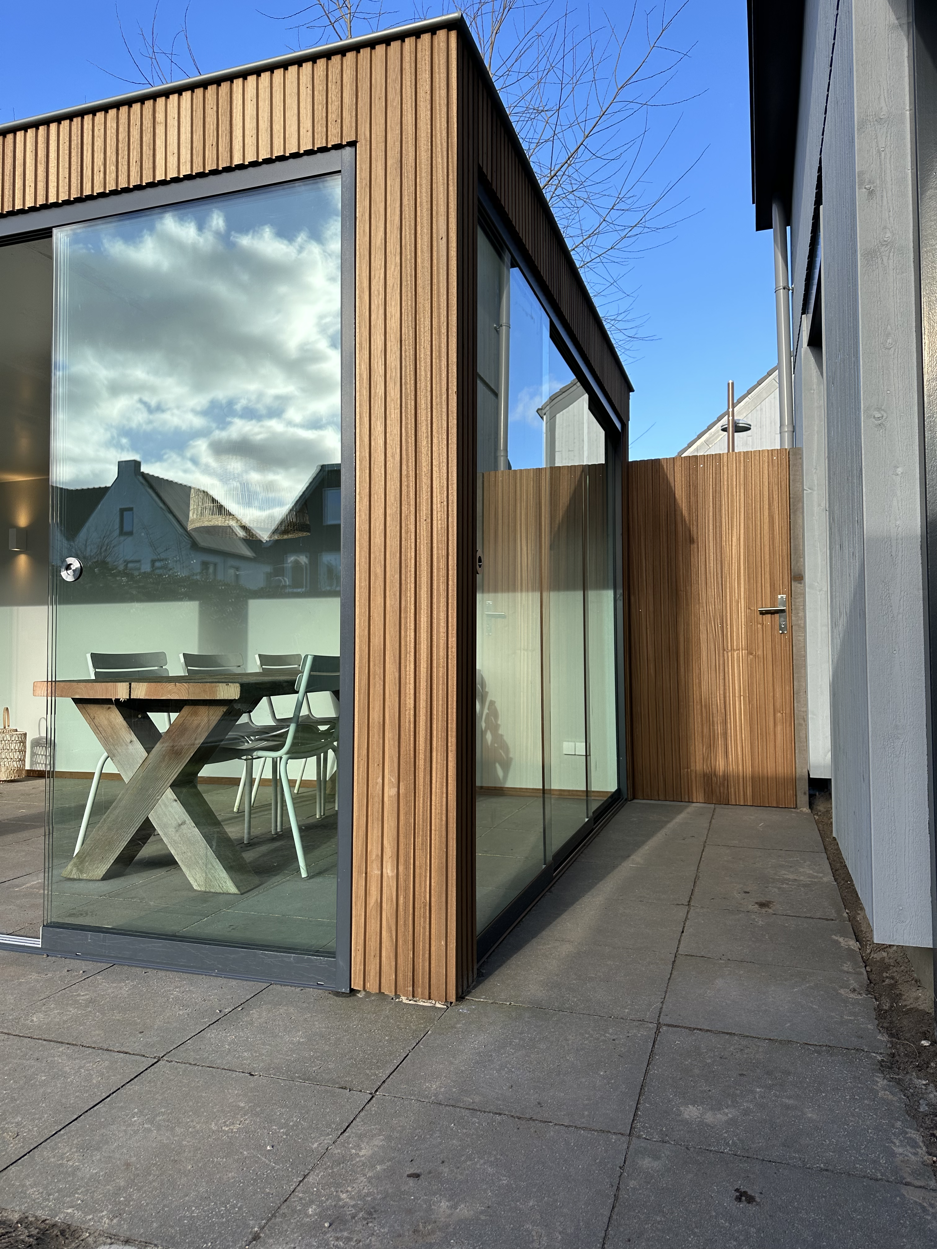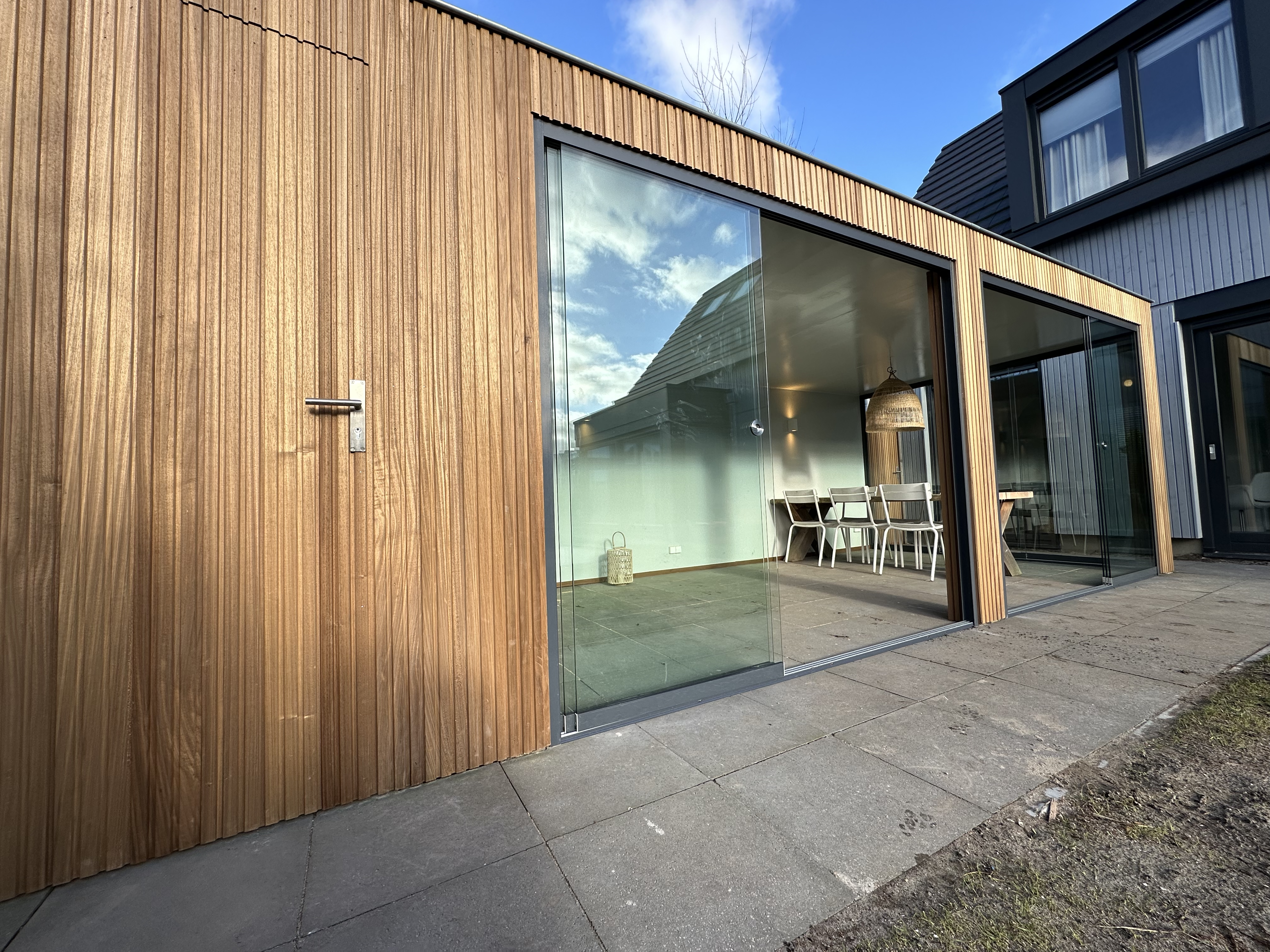 Waarom zou u kiezen voor een overkapping met ayous hout en glazen schuifpui in Muiden?