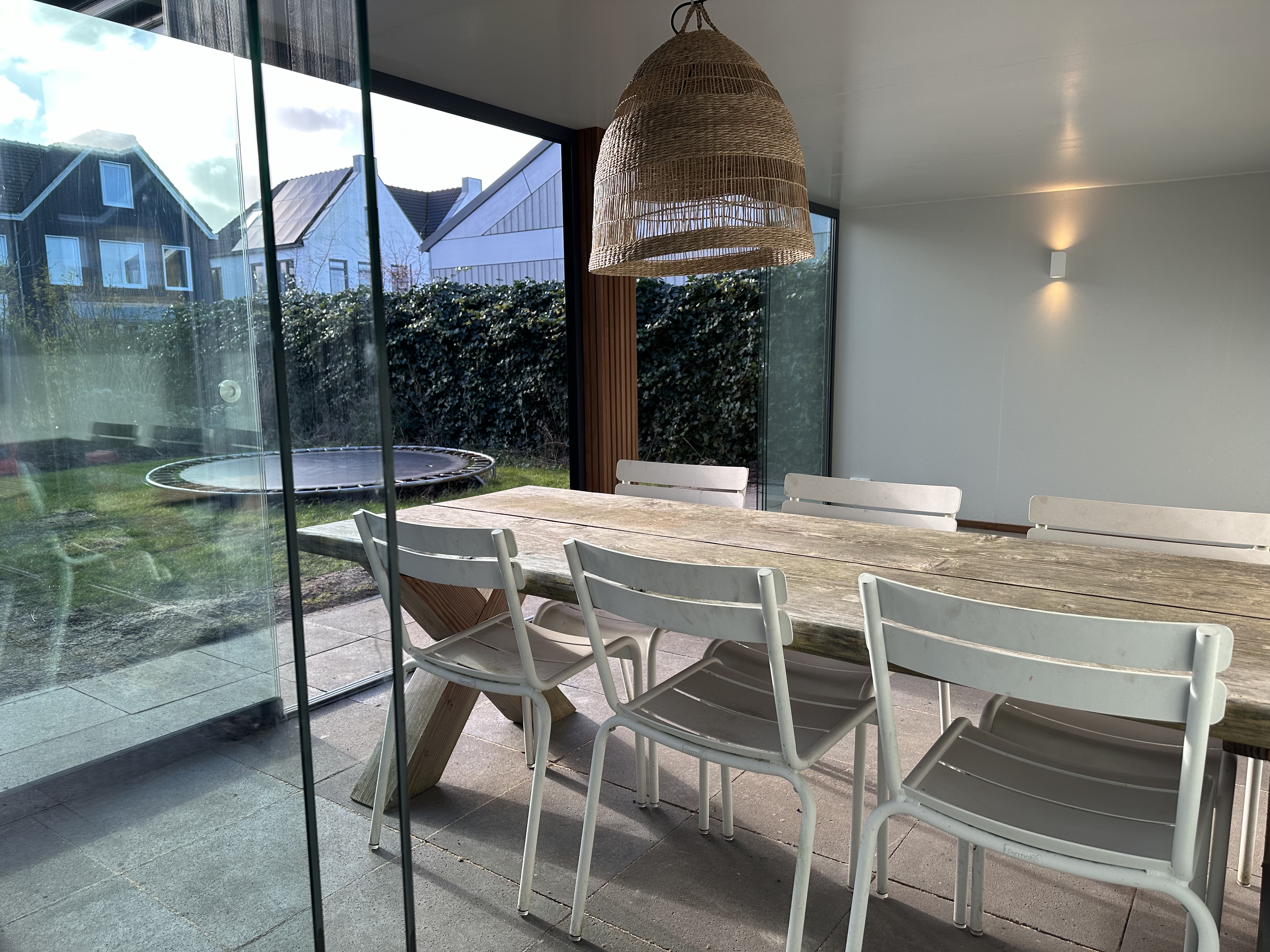 Een glazen schuifpui laat veel natuurlijk licht binnen en biedt een prachtig uitzicht op uw tuin en de omgeving van Muiden. Hierdoor ontstaat een lichte en luchtige sfeer, waardoor u het hele jaar door van uw buitenruimte kunt genieten.